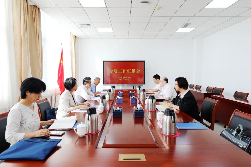 天津市商务局二级巡视员辛韶虹及相关处室负责人,beat365正版唯一官网必一党委书记马雷、校长黄凤羽等相关负责同志一同参加调研活动。